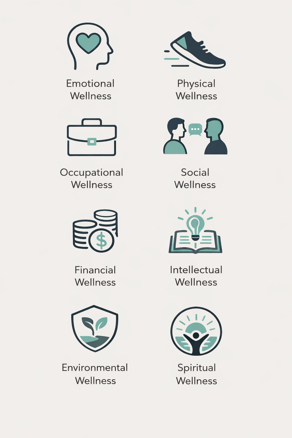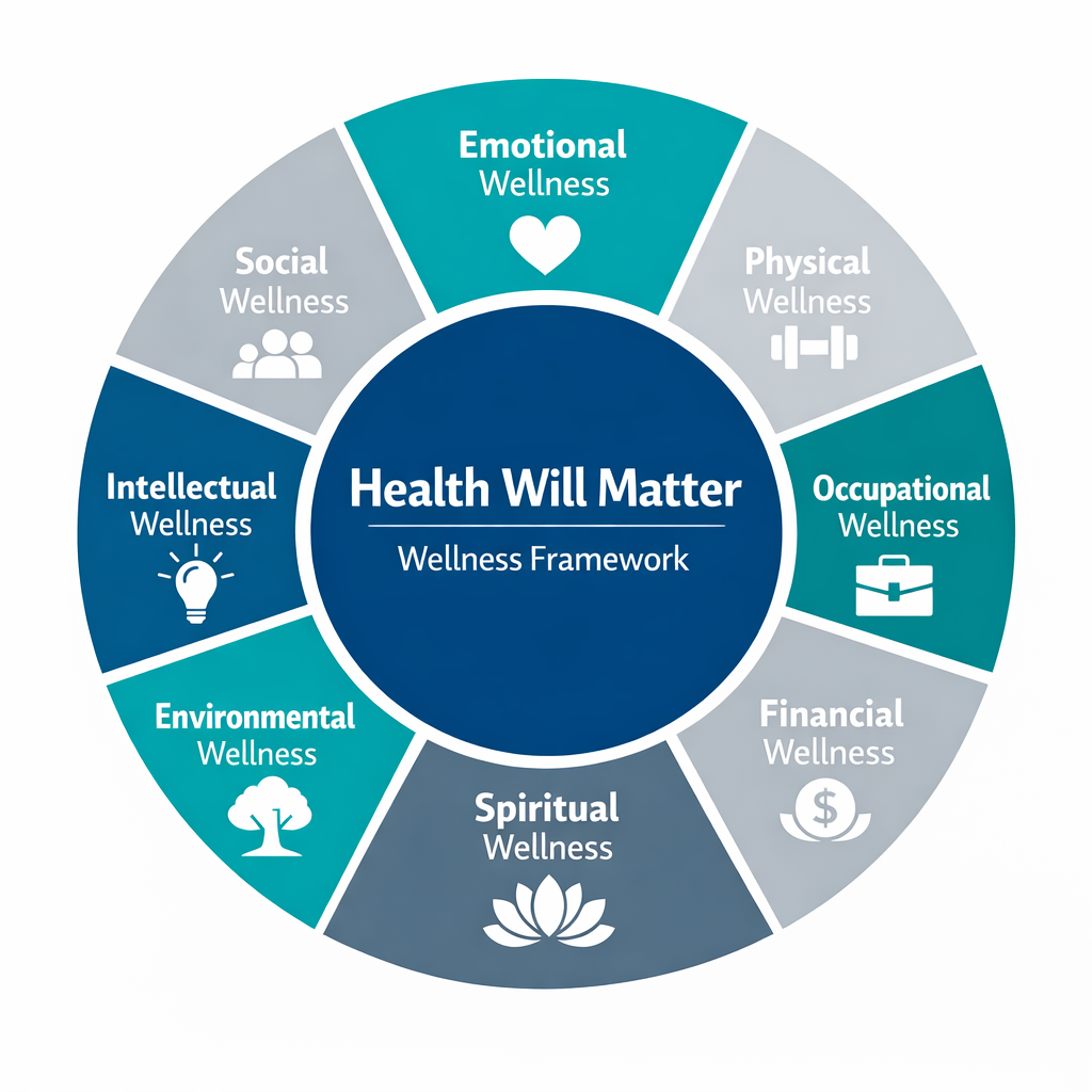 Workforce wellbeing is influenced by multiple interconnected aspects of health and life. Health Will Matter recognizes the importance of addressing the full spectrum of wellbeing through the Eight Dimensions of Wellness framework.